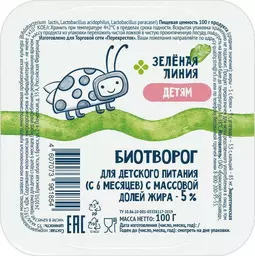 Биотворог детский с 6 месяцев 5% Зелёная Линия, 100г
