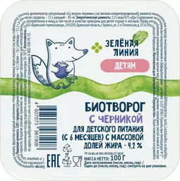 Биотворог с черникой с 6 месяцев 4.2% Зелёная Линия, 100г