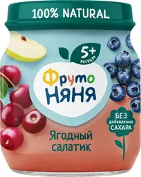 Пюре Фрутоняня Ягодный Салатик из яблок с черникой и вишней с 5 месяцев 100г