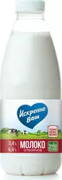 Молоко Искренне Ваш отборное питьевое пастеризованное 3.4-6%, 930мл