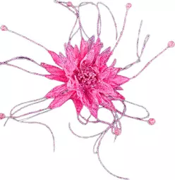 Цветок фантазийный Christmasdeluxe розовый на клипсе, 13см
