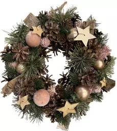 Венок новогодний с шишками, шарами и ягодами, 33 x 33 x 9см