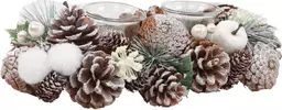 Венок-подсвечник бело-зеленый для двух свечей, 33см