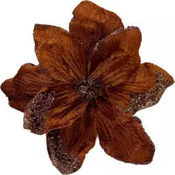 Цветок магнолия Christmasdeluxe на клипсе коричневый, 20см