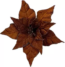 Цветок пуансеттия Christmasdeluxe на клипсе коричневый из полиэстера, 20см