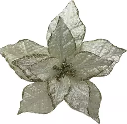 Цветок пуансеттия Christmasdeluxe на клипсе кремовый из полиэстера, 20см