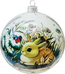 Шар елочный Коломеев Зайчик под кустиком, 8см