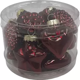 Набор елочных украшений Christmasdeluxe Шишка, звезда, сердце и цветок бордовый 4см, 12шт