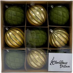 Набор елочных шаров Christmasdeluxe золотой и зеленый пластик 8см, 9шт