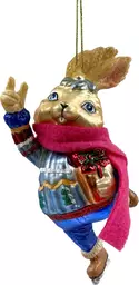 Украшение елочное Christmasdeluxe Заяц в розовом шарфе, 9.3 x 5.1 x 13.7см