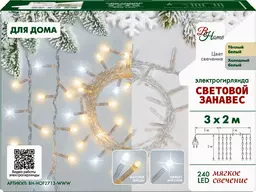 Электрогирлянда занавес B&h Световой 240Led теплый белый и холодный белый, 3 x 2м