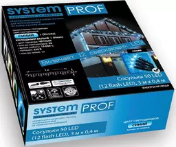 Электрогирлянда сосульки Glos System Prof 50Led (12 Flash Led) синий и холодный белый, 3 x 0.4м