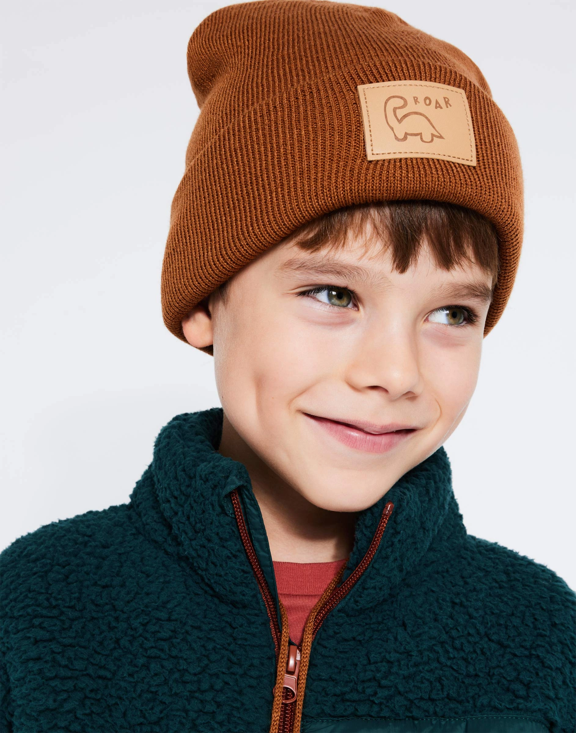 Коричневая шапка-бини с патчем для мальчика Bas006247-1