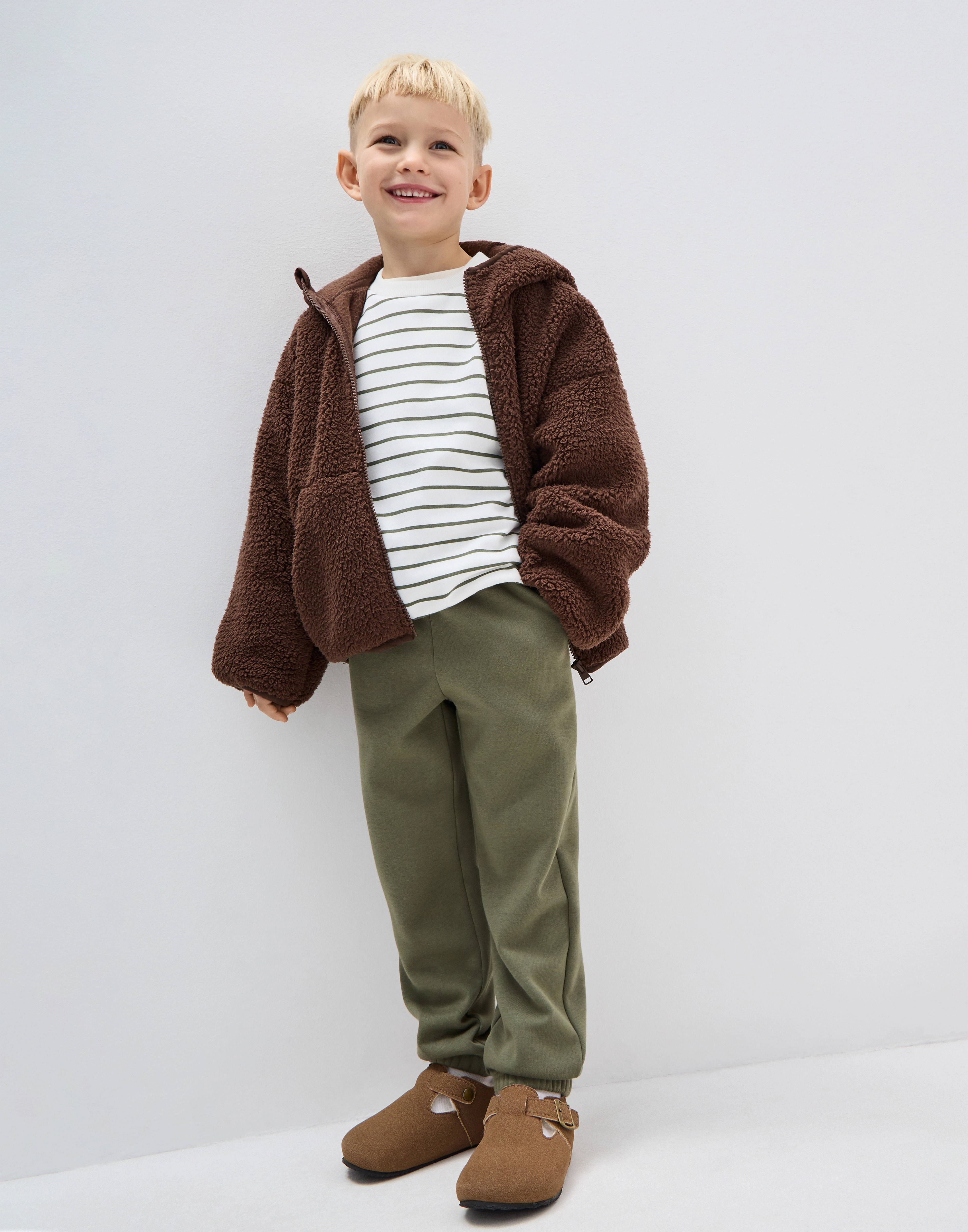 Хаки спортивные брюки оверсайз с нашивкой для мальчика Bac014470-1