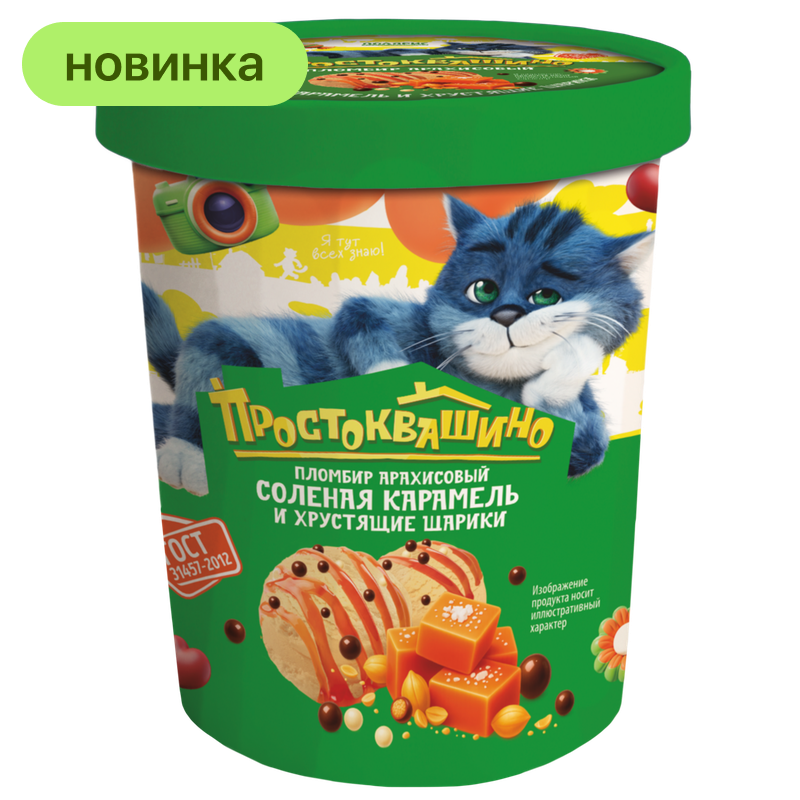 Мороженое Простоквашино пломбир солёная карамель и арахис, 12%, 260 г