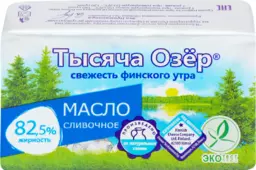 Масло сладкосливочное Тысяча Озер несоленое 82.5%, без змж, 180г