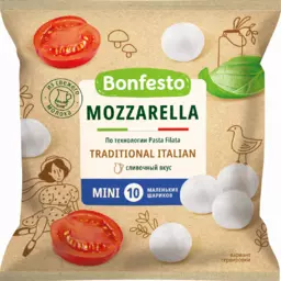 Сыр Bonfesto Моцарелла мини 45%, без змж, вес сыра 80г, вес с рассолом 230г