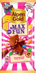 Шоколад молочный Alpen Gold Max Fun с арахисом, шоколадным драже и карамелью, 140г