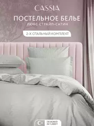 Комплект постельного белья 2-спальный Cassia Люкс страйп-сатин светло-серый, 6предметов