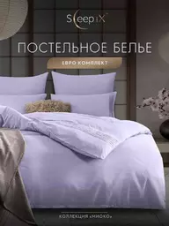 Комплект постельного белья евро Sleepix Миоко сиреневый, 6предметов