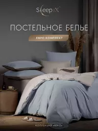 Комплект постельного белья евро Sleepix Юко голубой, 6предметов