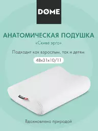Подушка анатомическая эргономичная Dome Скиве эрго с эффектом памяти пенополиуретан/хлопковый трикотаж/жаккард цвет: белый, 48×31×10/11см