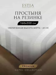 Простыня на резинке Estia Hotel Collection страйп-сатин цвет: белый, 160×200×25см