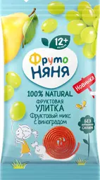 Фруктовая улитка Фрутоняня Фруктовый микс с виноградом, с 12 месяцев, 15г