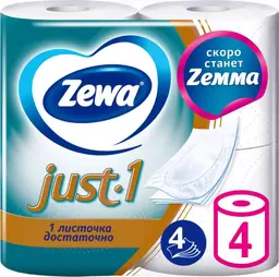Туалетная бумага Zewa Just-1 4 слоя, 4рулона