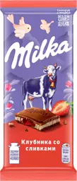 Шоколад молочный Milka клубничная и сливочная начинка, 80г