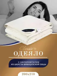 Одеяло стёганое Classic by T Мерино шерсть мериноса в хлопке цвет: молочный, 200×210см