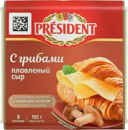 Сыр плавленый President с грибами 40%, ломтики, 150г