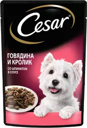Влажный корм для собак Cesar говядина-кролик-шпинат в соусе, 85г