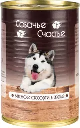 Влажный корм для собак Собачье счастье мясное ассорти в желе, 410г