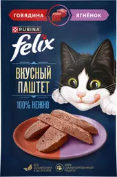 Влажный корм для кошек Felix Вкусный паштет говядина-ягненок, 75г