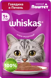Влажный корм для кошек Whiskas говядина-печень паштет, 75г