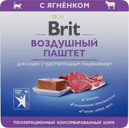 Влажный корм для кошек с чувствительным пищеварением Brit ягненок воздушный паштет, 100г