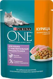 Влажный корм для кошек с чувствительным пищеварением Purina One курица-морковь, 75г