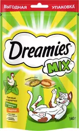 Лакомство для кошек для взрослых кошек Dreamies с мятой и курицей, 140г
