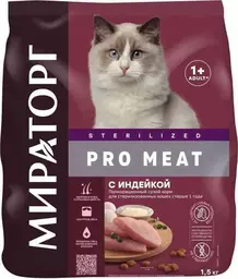 Сухой корм для стерилизованных кошек Мираторг Pro Meat Sterilized индейка, 1.5кг