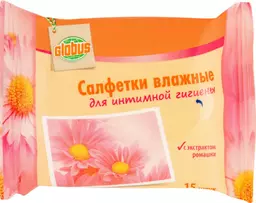 Влажные салфетки для интимной гигиены Глобус с экстрактом ромашки, 15шт.
