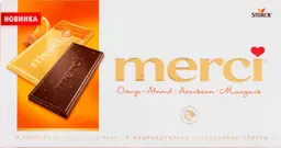 Шоколад горький Merci с соком апельсина и кусочками миндаля, 100г