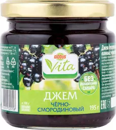 Джем чёрносмородиновый Глобус Вита без сахара, 195г