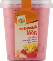 Мёд кремовый Глобус липовый натуральный с малиной, 500г