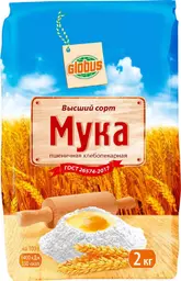 Мука пшеничная Глобус хлебопекарная высший сорт, 2кг