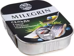 Сельдь Milegrin филе-кусочки в масле с ягодами можжевельника, 115г