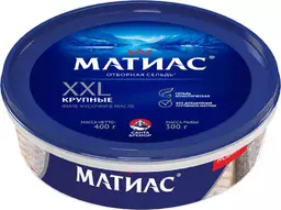 Сельдь атлантическая слабосолёная Матиас Xxl Отборная филе-кусочки в масле, 400г