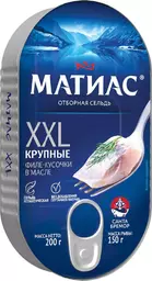 Сельдь атлантическая слабосолёная Матиас Xxl отборный, филе-кусочки в масле, 200г