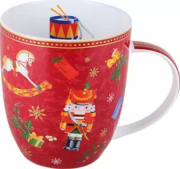 Кружка фарфоровая Щелкунчик, цвет: белый/красный, 420мл