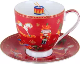 Пара чайная фарфоровая Щелкунчик, цвет: белый/красный, 440мл